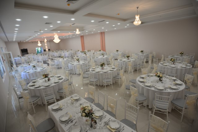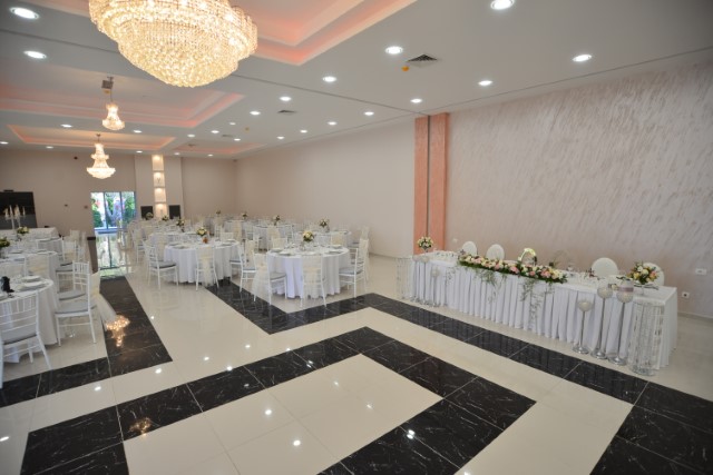 Sala ima kapacitet 300 gostiju, sa okruglim banket stolovima, prostrani podijum za igru, sa više pozicija mladenačkog stola, kao i mladenačkom sobom.